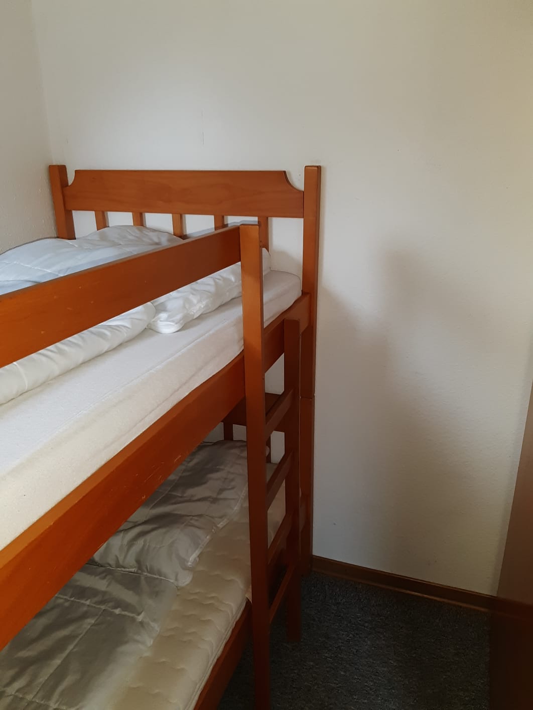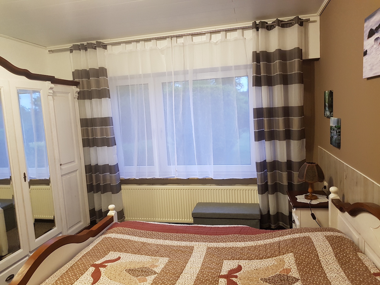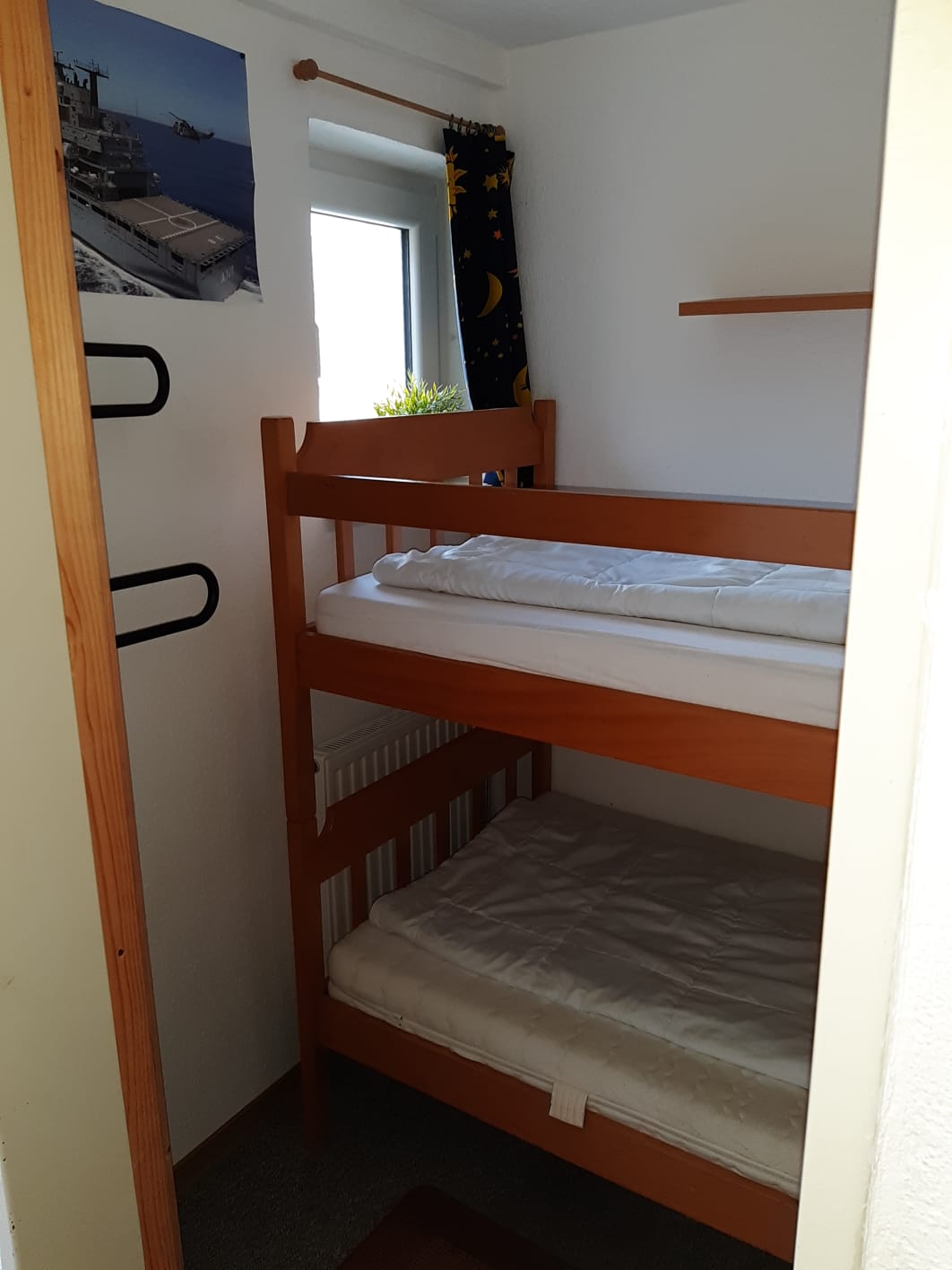 Es stehen zwei Schlafzimmer mit Doppelbetten und Kleiderschränken sowie ein Butzenzimmer mit einem Etagenbett für Kinder zur Verfügung.