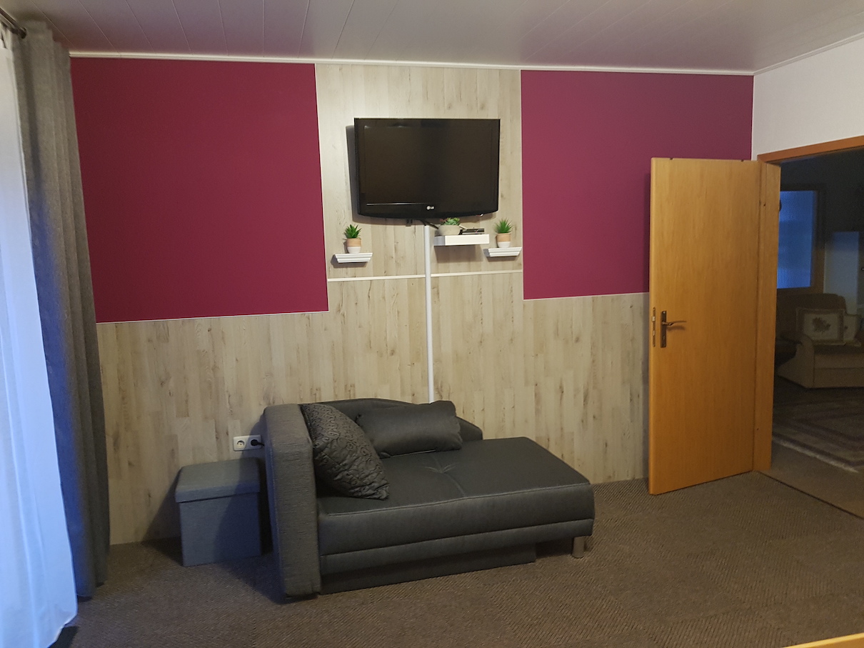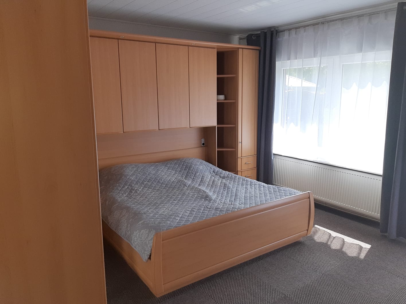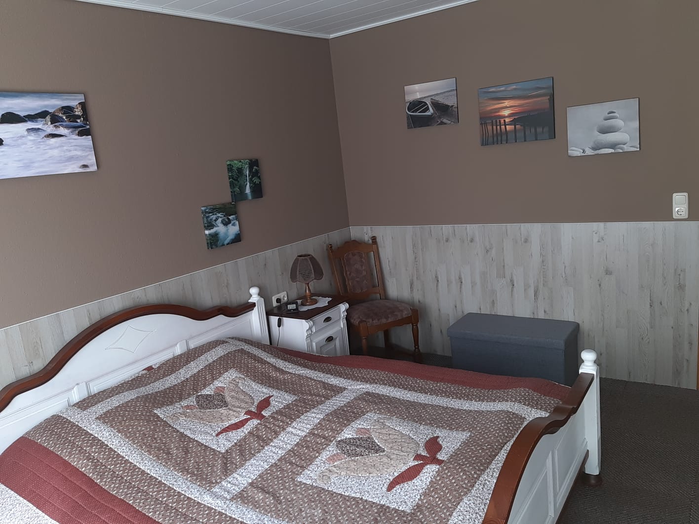 Es stehen zwei Schlafzimmer mit Doppelbetten und Kleiderschränken sowie ein Butzenzimmer mit einem Etagenbett für Kinder zur Verfügung.